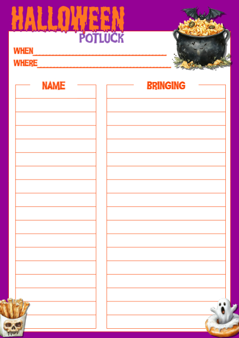 Halloween Potluck Signup Sheet A4 Free Printable Download Template