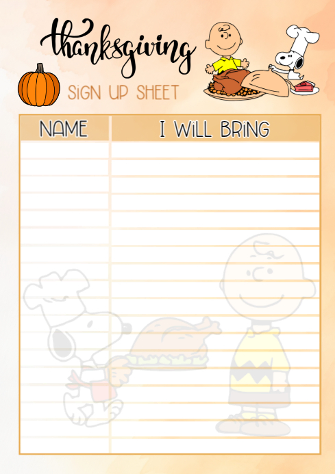 Thanksgiving Potluck Sign up Sheet Snoopy Template PosterMyWall