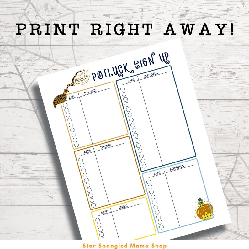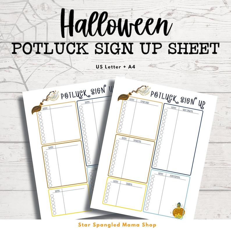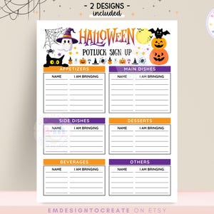Halloween Potluck Sign up Sheet: US Letter A4 (printable) Etsy