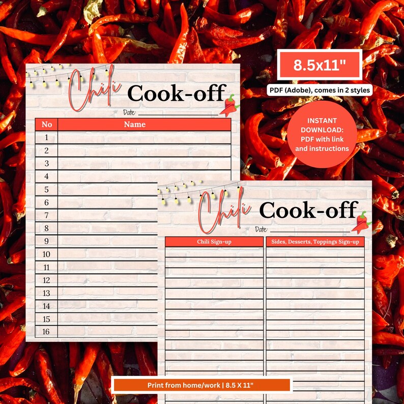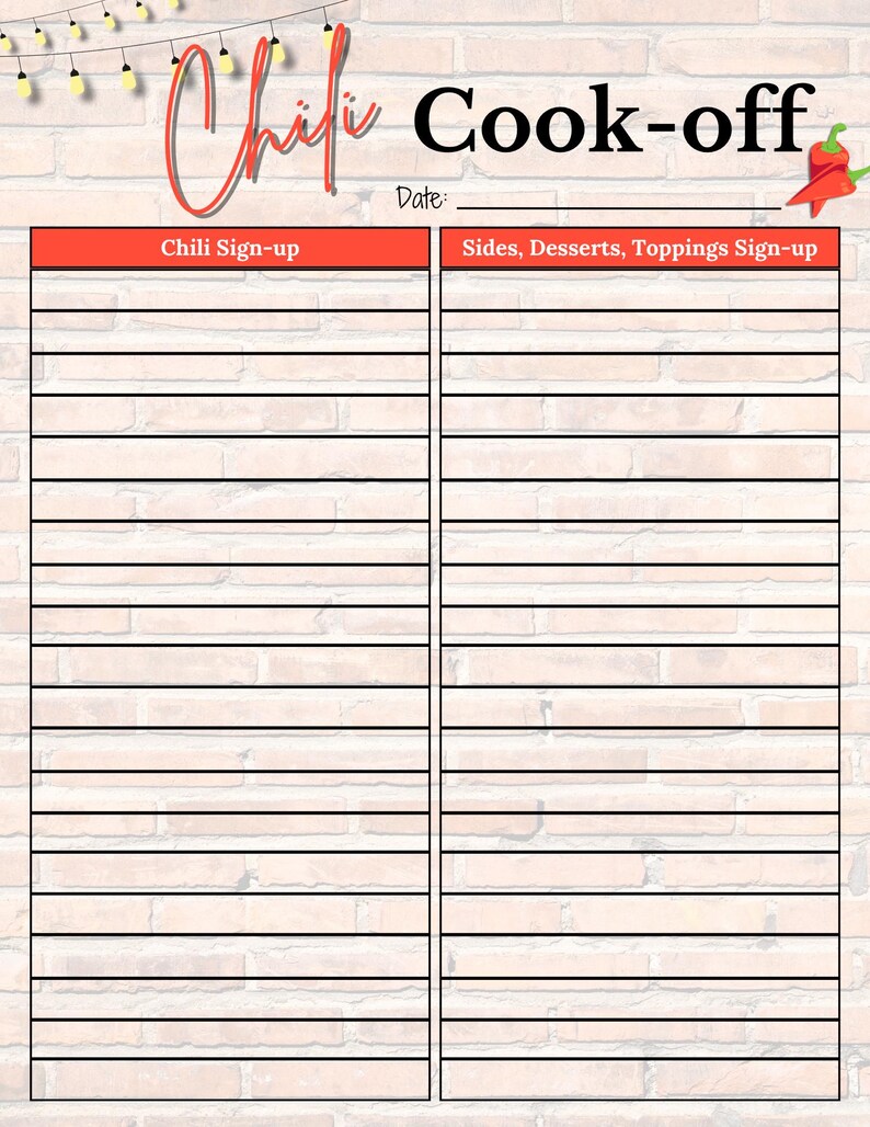 Chili Cook off Sign up Sheet Chili Cook off Sheet Chili Cookoff