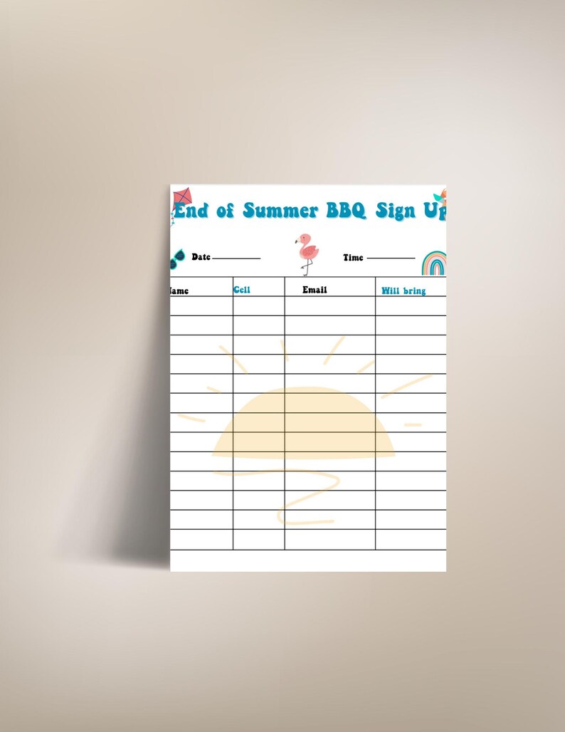 End of Summer BBQ Potluck Sign up Sheet printable Party Planner