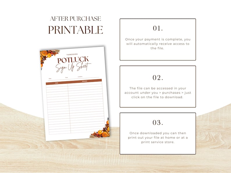 Thanksgiving Potluck Sign up Sheet Printable PDF Template Etsy