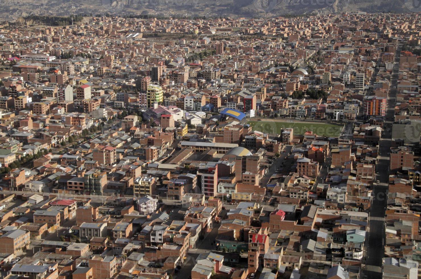 Aerial View of the red buildings in El Alto and La Paz Bolivia 8367249