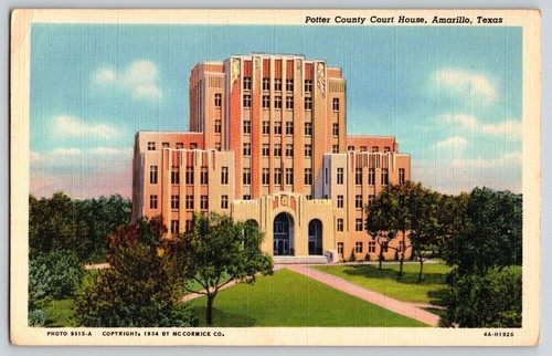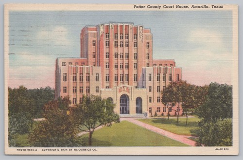 Vintage 1930s Potter County Court House Amarillo Texas Postcard