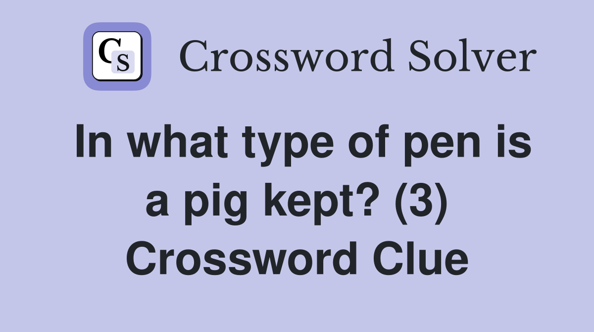 In what type of pen is a pig kept? (3) Crossword Clue Answers
