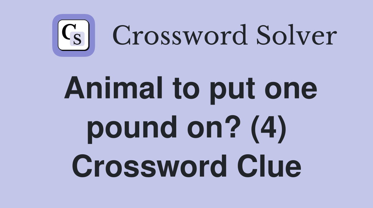 Animal to put one pound on? (4) Crossword Clue Answers Crossword Solver