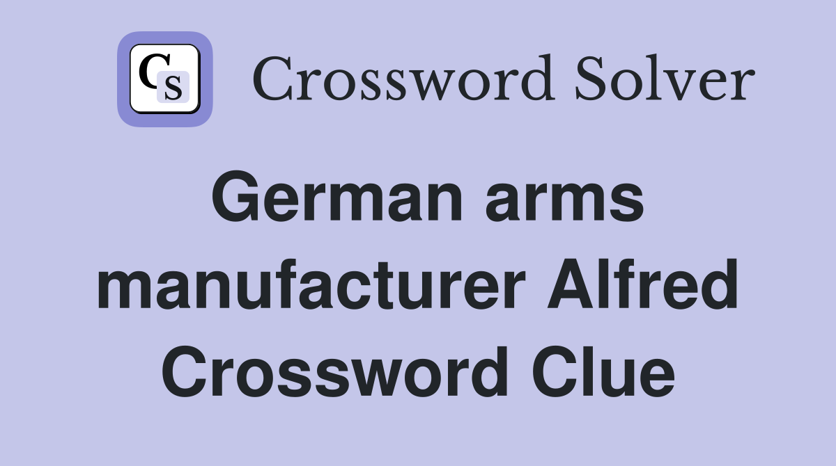 German arms manufacturer Alfred Crossword Clue Answers Crossword Solver