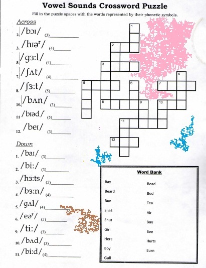 Vowel Sounds Crossword Puzzle with Phonetic Clues and Word Bank for