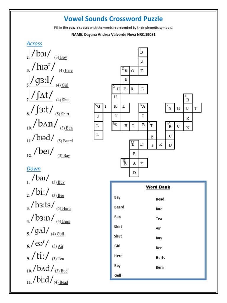 Vowel sounds Crossword Puzzle Crossword Puzzle