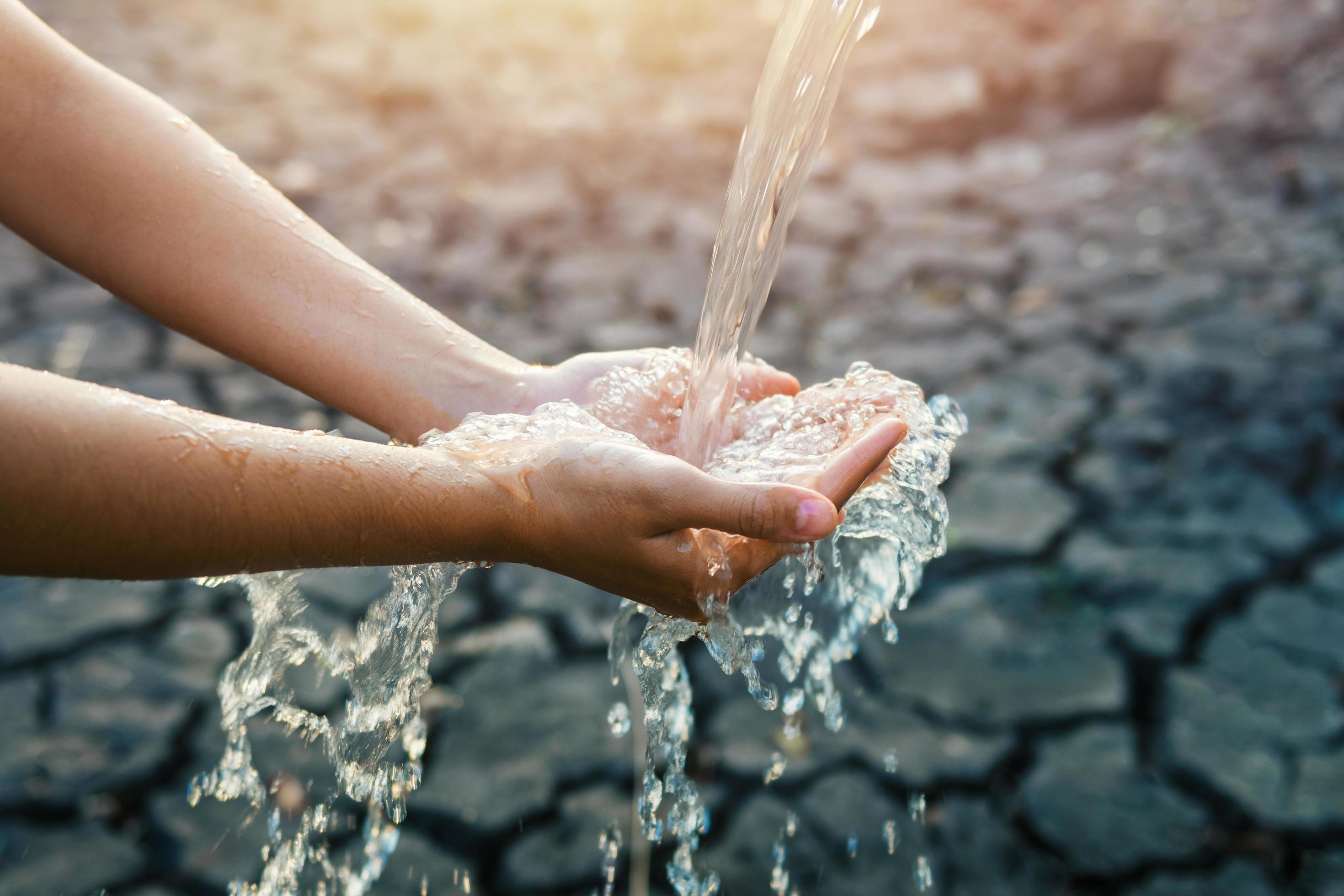 Water pouring on hand in morning ligth background 7950903 Stock Photo