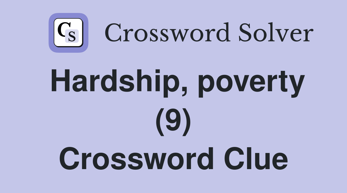 Hardship poverty (9) Crossword Clue Answers Crossword Solver