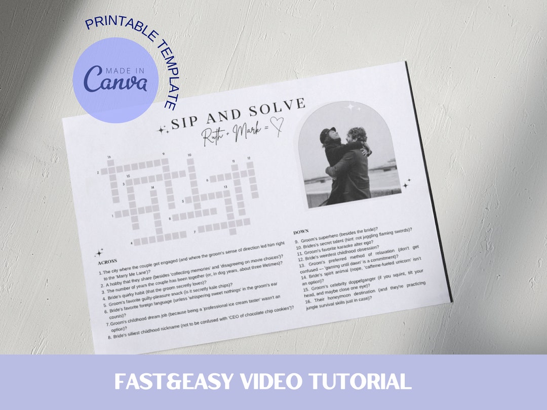 Wedding Crossword Puzzle Template Sip and Solve Bridal Shower