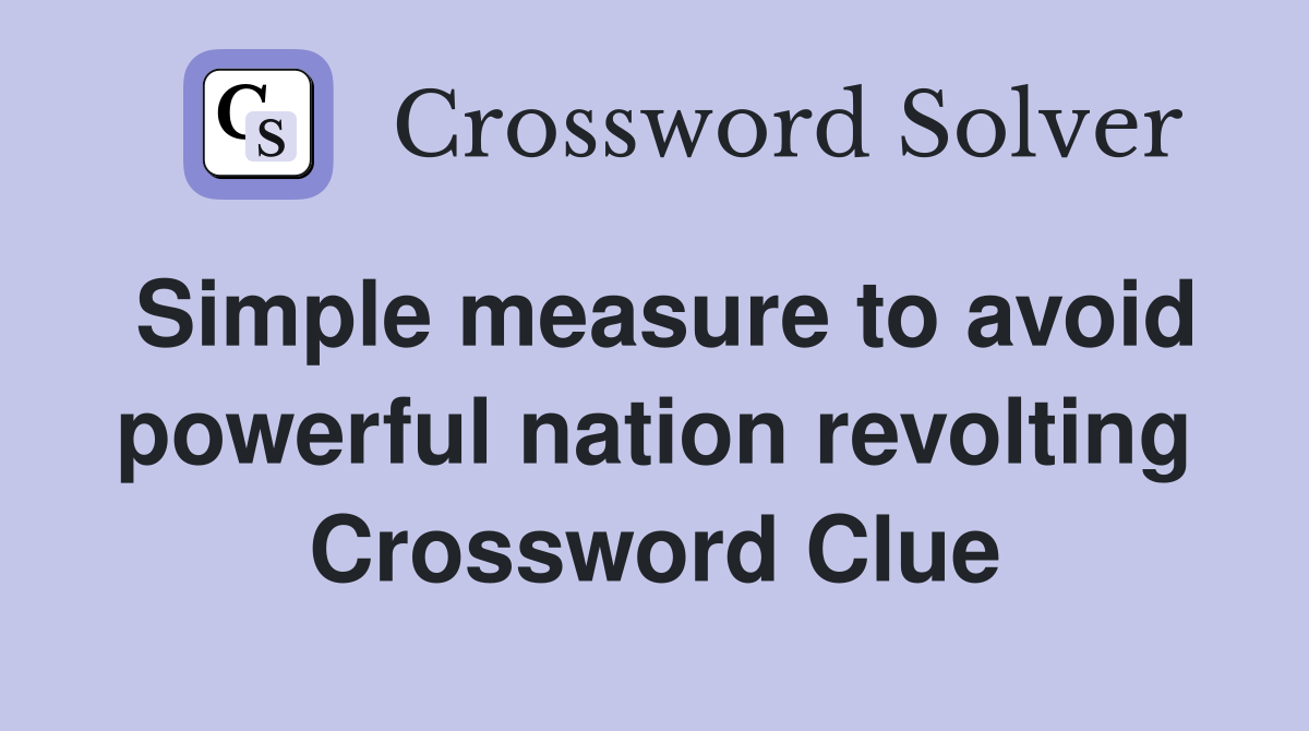 Simple measure to avoid powerful nation revolting Crossword Clue
