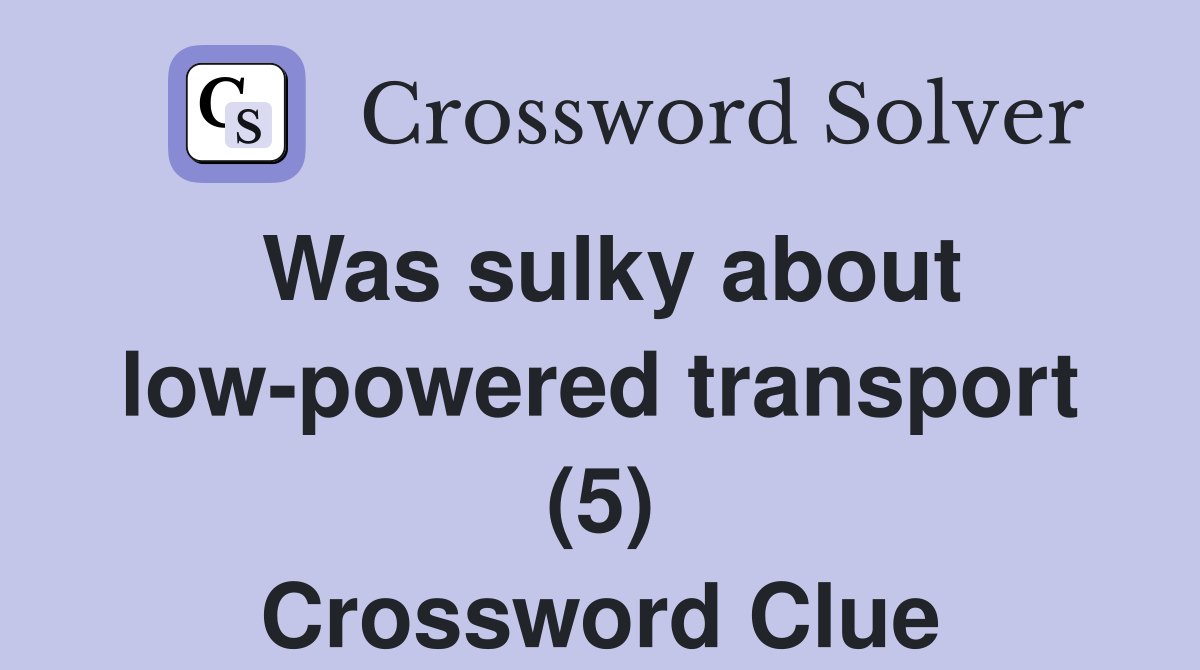 Was sulky about low powered transport (5) Crossword Clue Answers