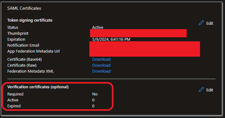 Graph: How to get SAML Verification certificates (optional) settings