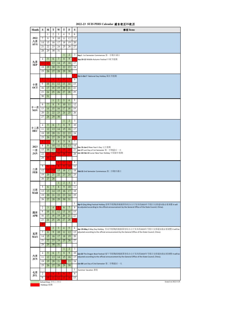 Students PDIS 2022 2023 School Calendar PDF Academic Term