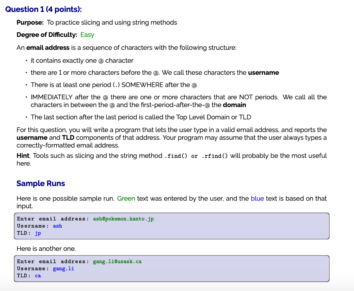 Solved Lestion 1 (4 points): Purpose: To practice slicing Chegg com