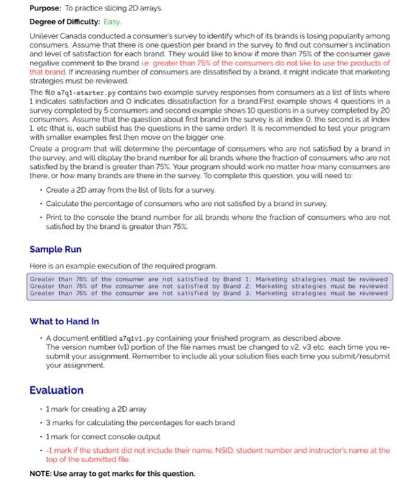 Solved Purpose: To practice slicing 2D arrays Degree of Chegg com