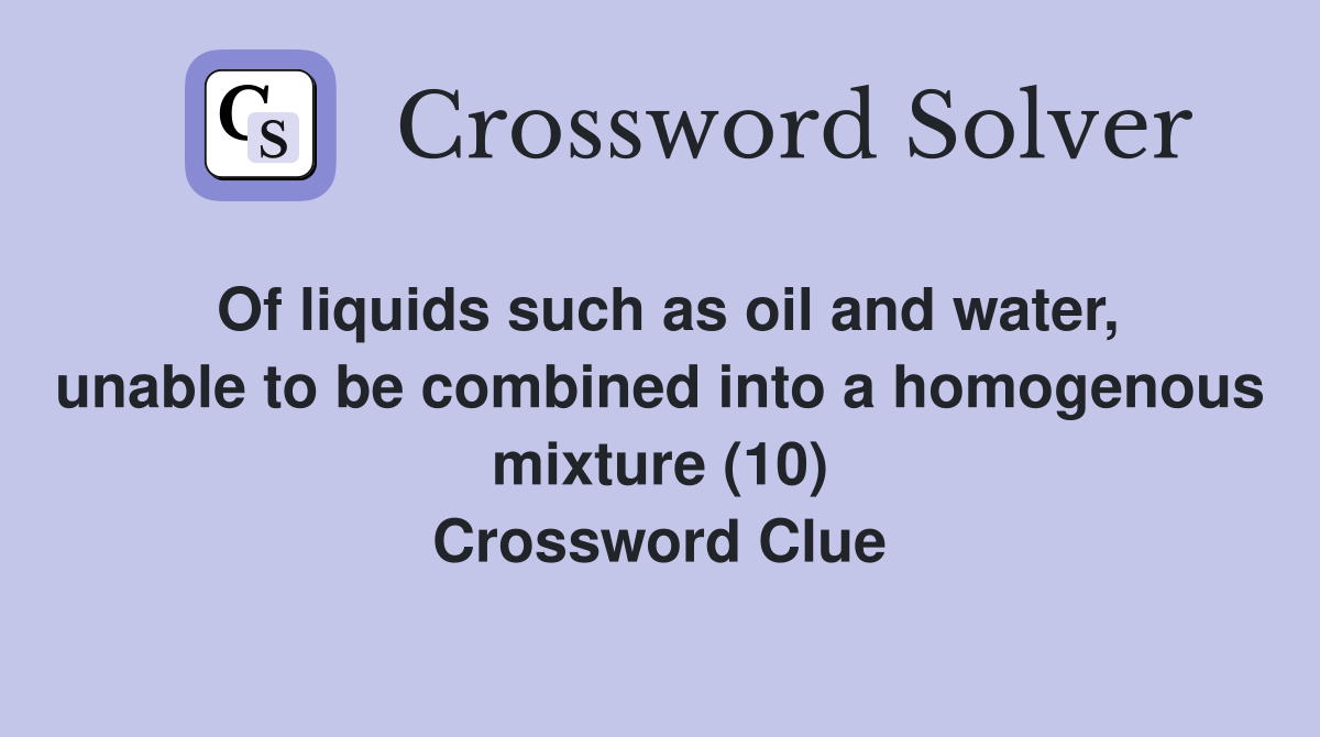 Of liquids such as oil and water unable to be combined into a