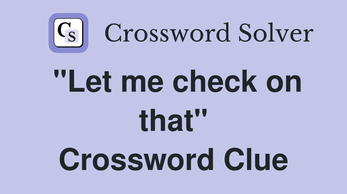 quot Let me check on that quot Crossword Clue Answers Crossword Solver