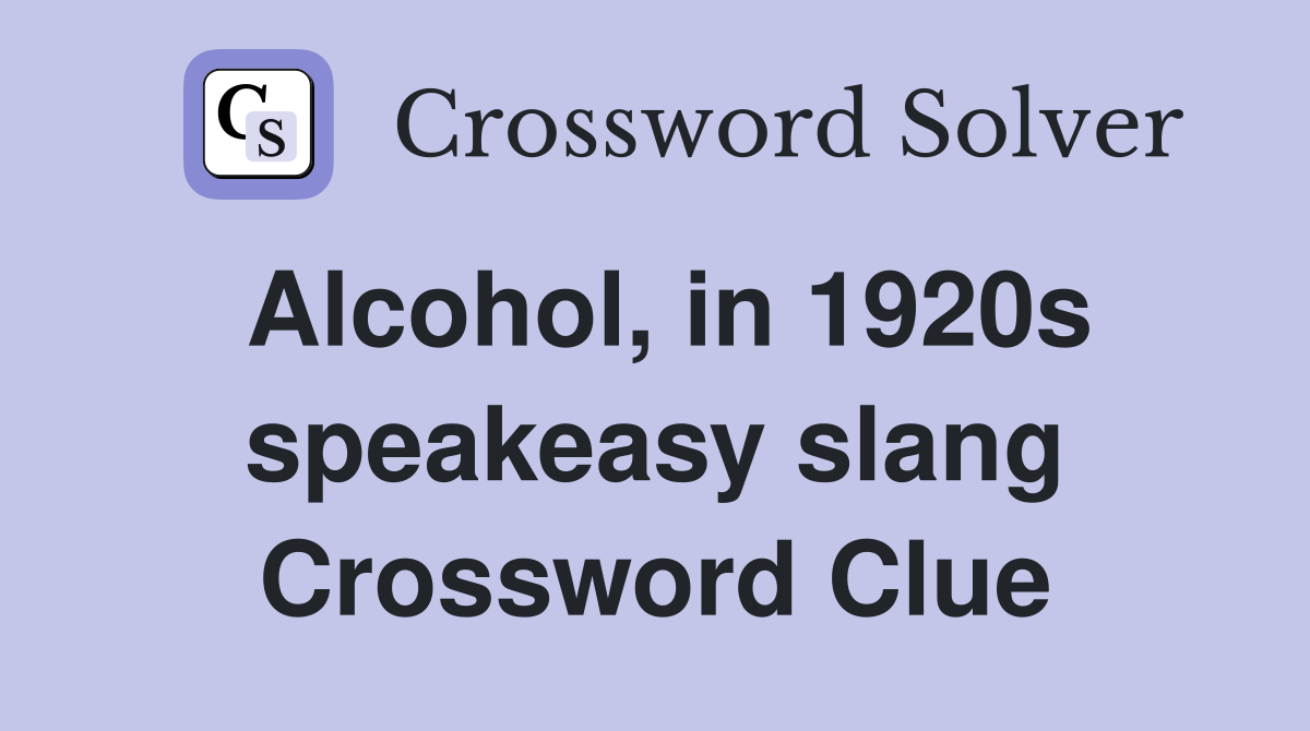 Alcohol in 1920s speakeasy slang Crossword Clue Answers Crossword