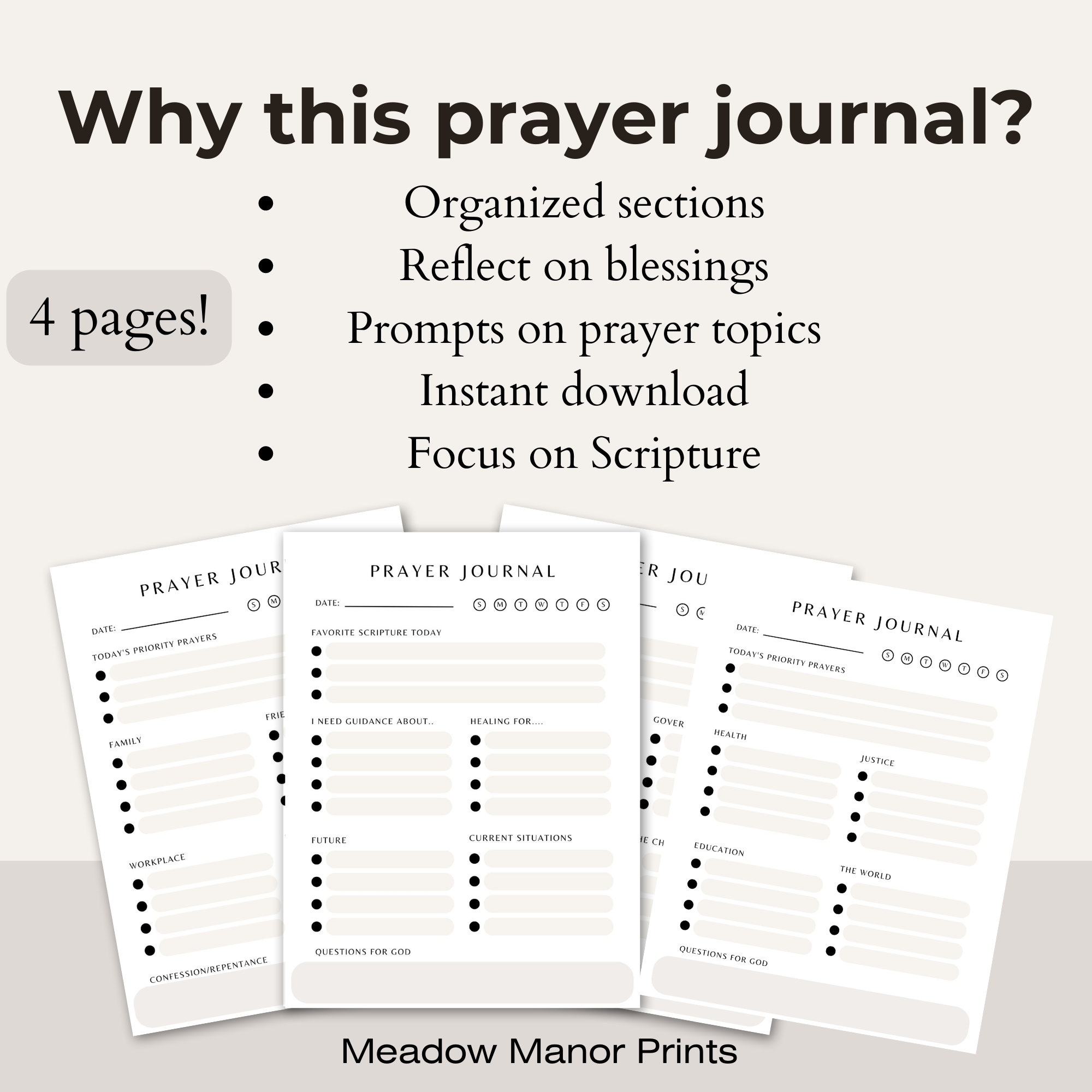 Prayer List Printable Journal Prayer Cards Daily Devotional Notebook