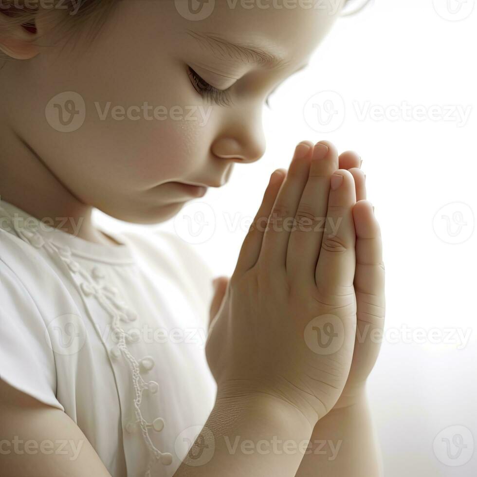 Childs Hands in Prayer Position on White Background 29974615 Stock