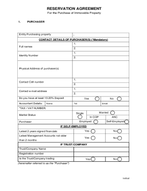Fillable Online Pre Construction Reservation Agreement Apres Shores