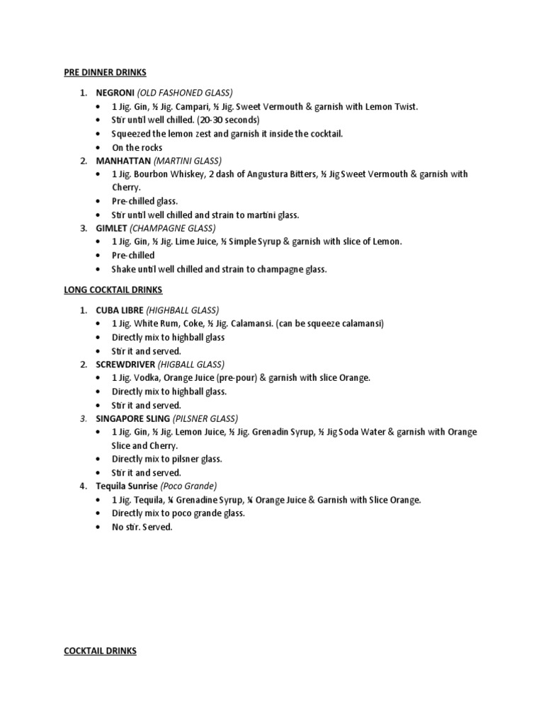 Pre Dinner Drinks PDF Martini (Cocktail) Cocktails