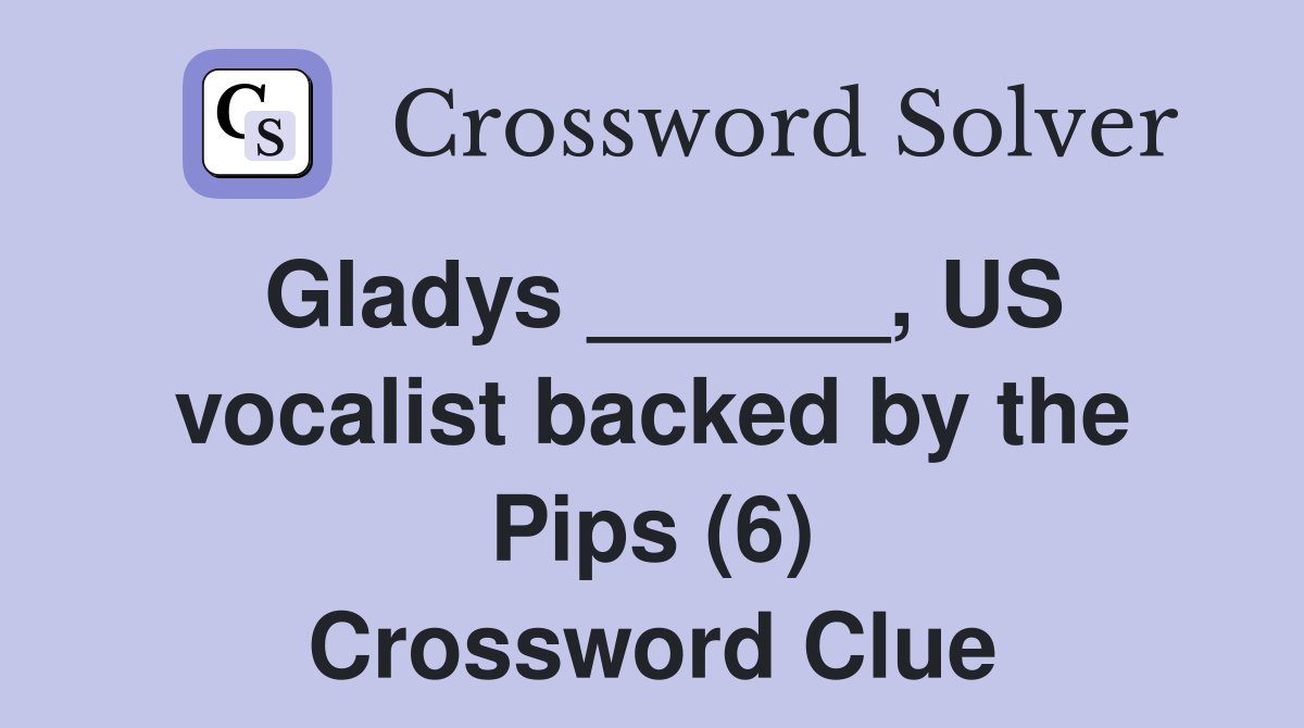 Gladys US vocalist backed by the Pips (6) Crossword Clue