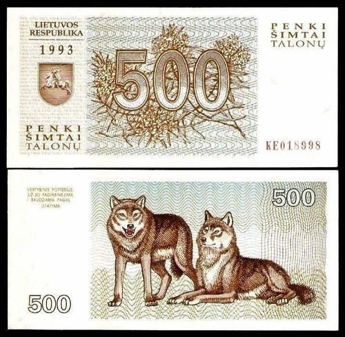 Lithuania 500 Talons P 46 1993 Wolf Pre Euro UNC Lithuanian World