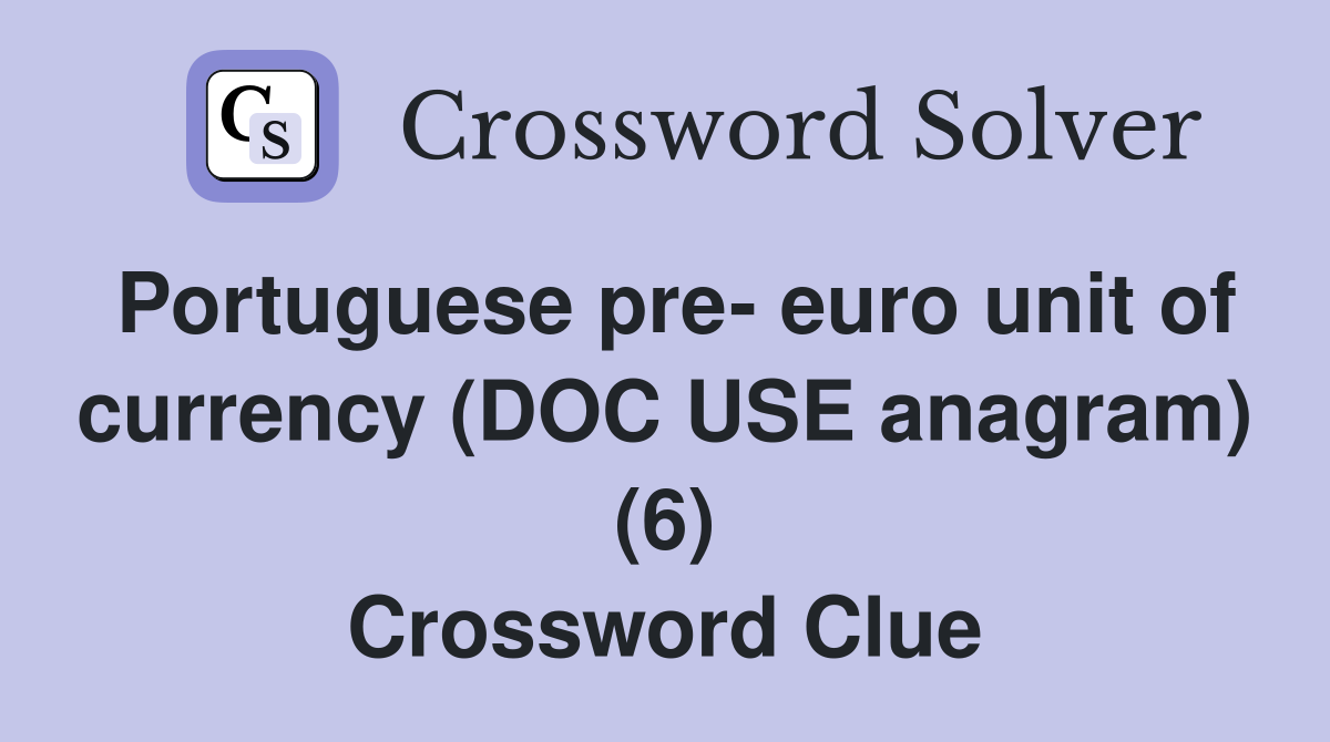 Portuguese pre euro unit of currency (DOC USE anagram) (6) Crossword