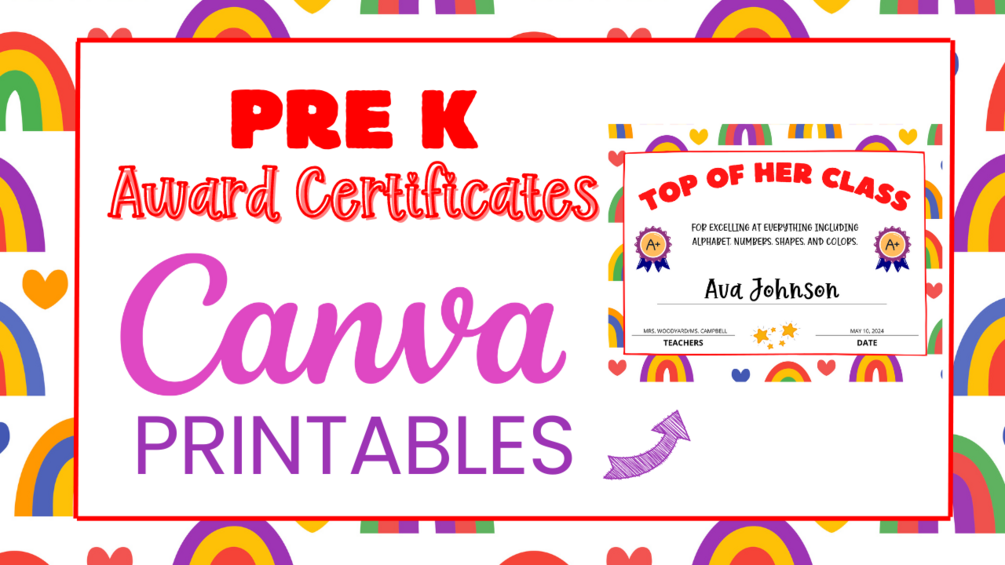 Editable Pre K End of Year Awards Graduation Certificates Printable