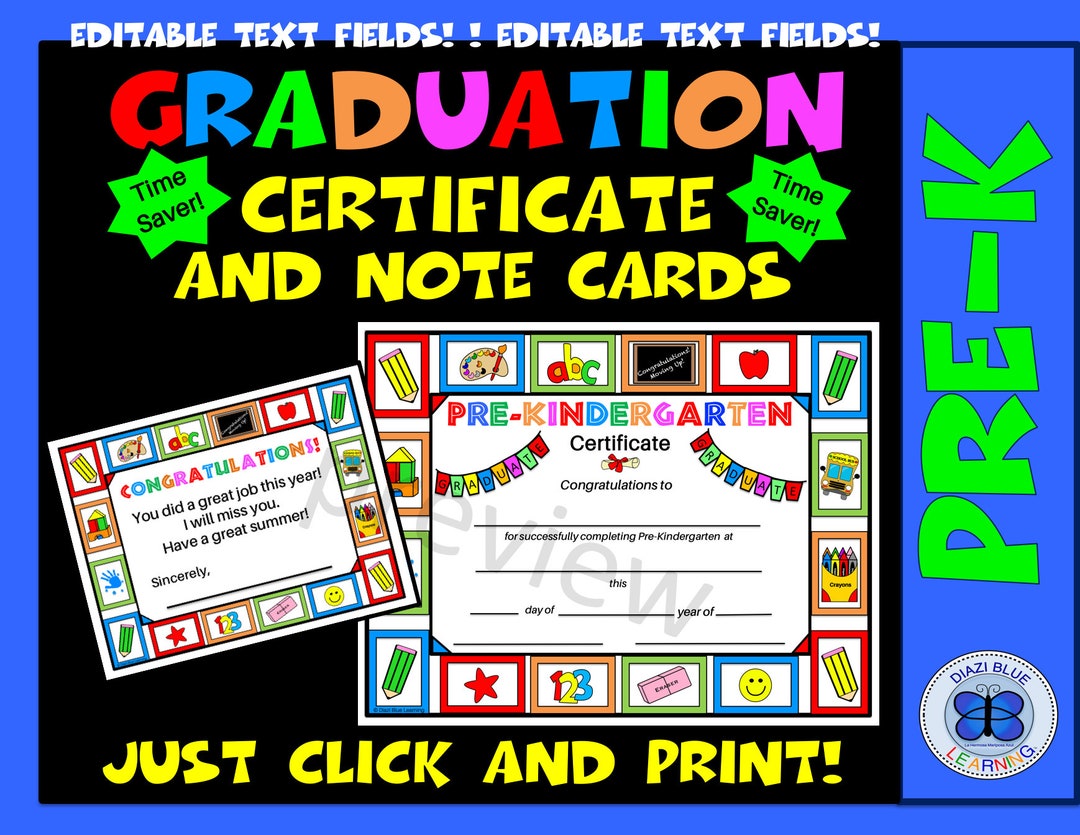 Pre k Certificates With Note Cards Pre k Certificates Editable Pre k