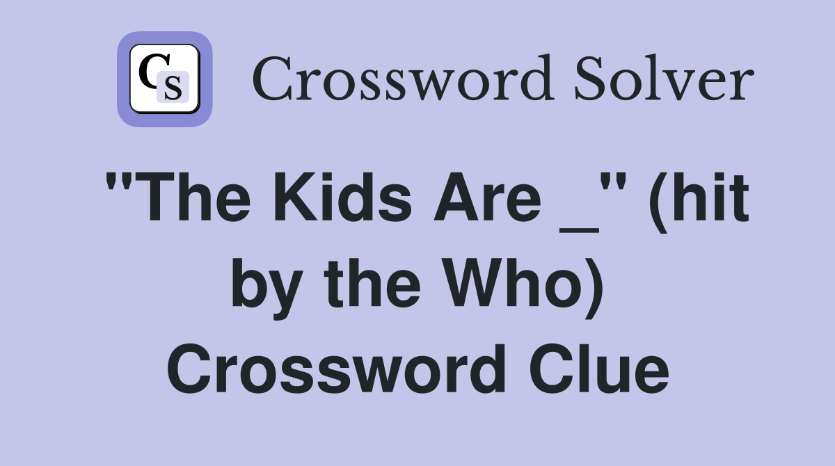 quot The Kids Are quot (hit by the Who) Crossword Clue Answers Crossword
