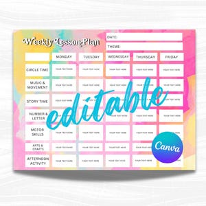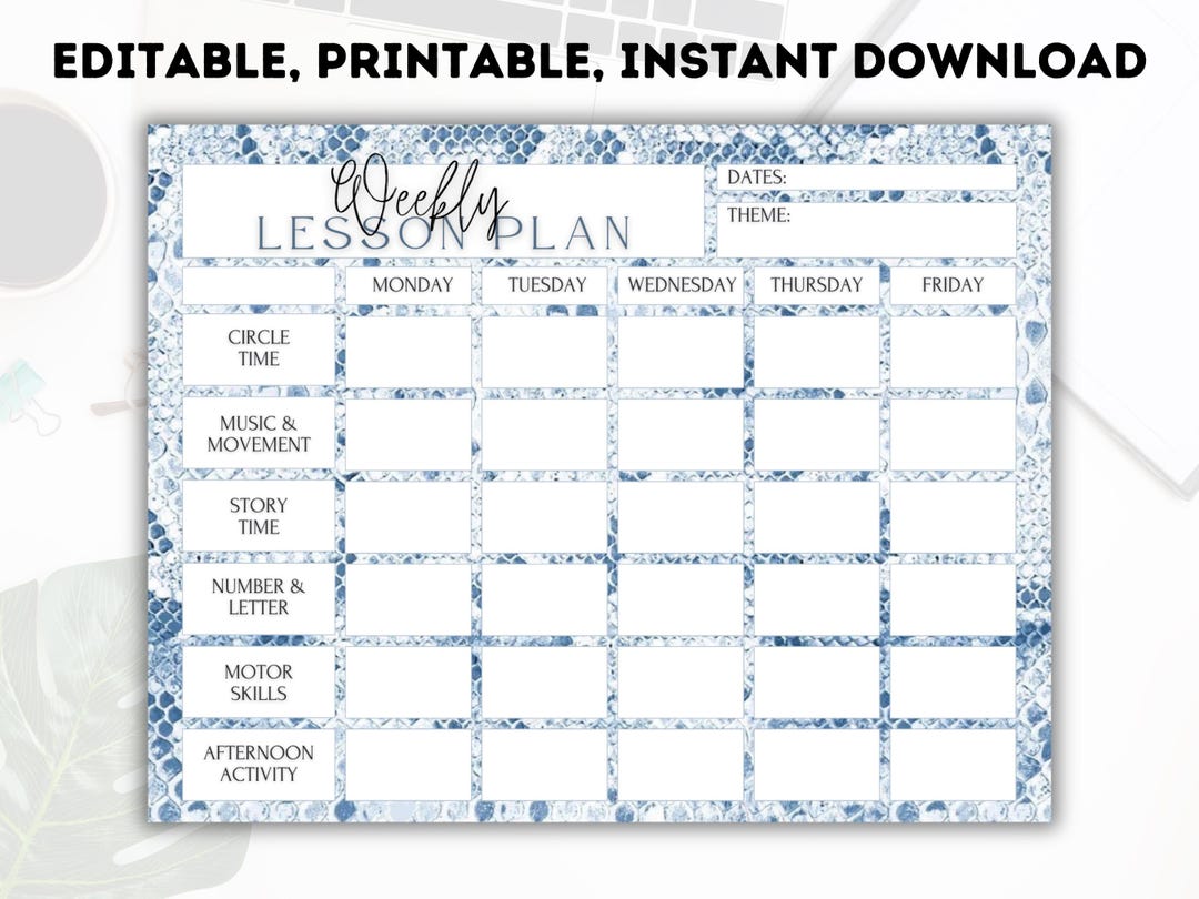 Weekly Lesson Plan Template Teacher Lesson Plan Etsy