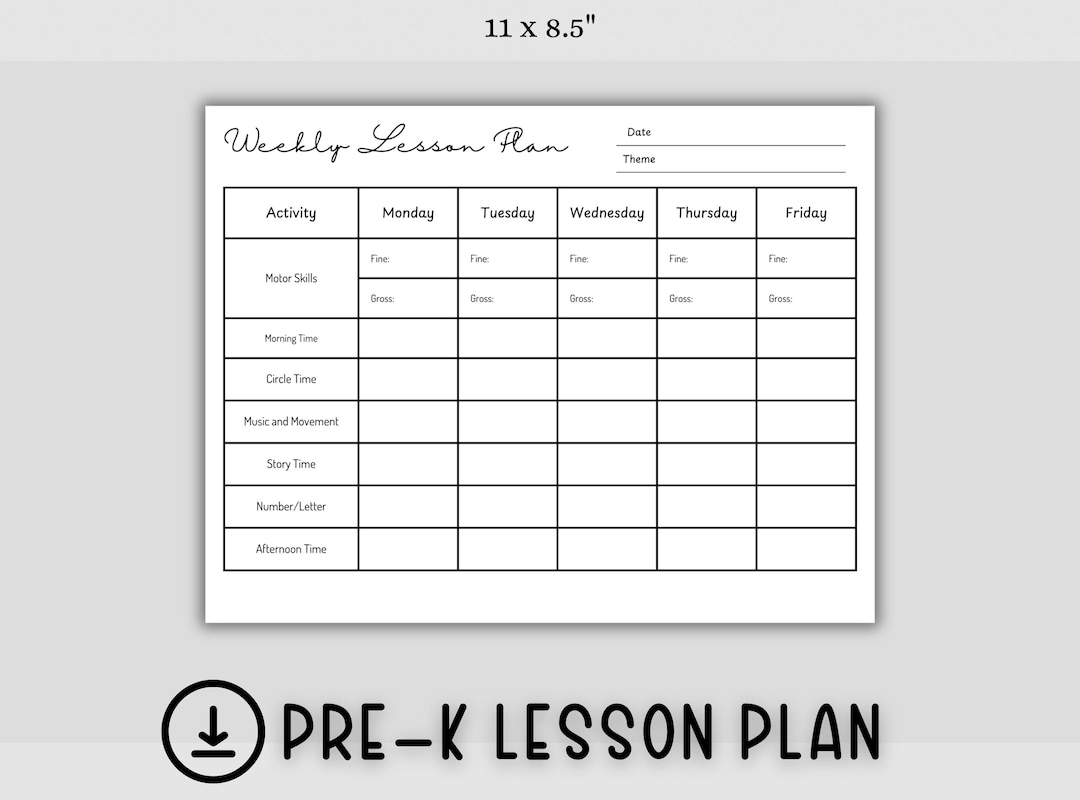 Weekly Lesson Plan Template Teacher Lesson Planner Preschool
