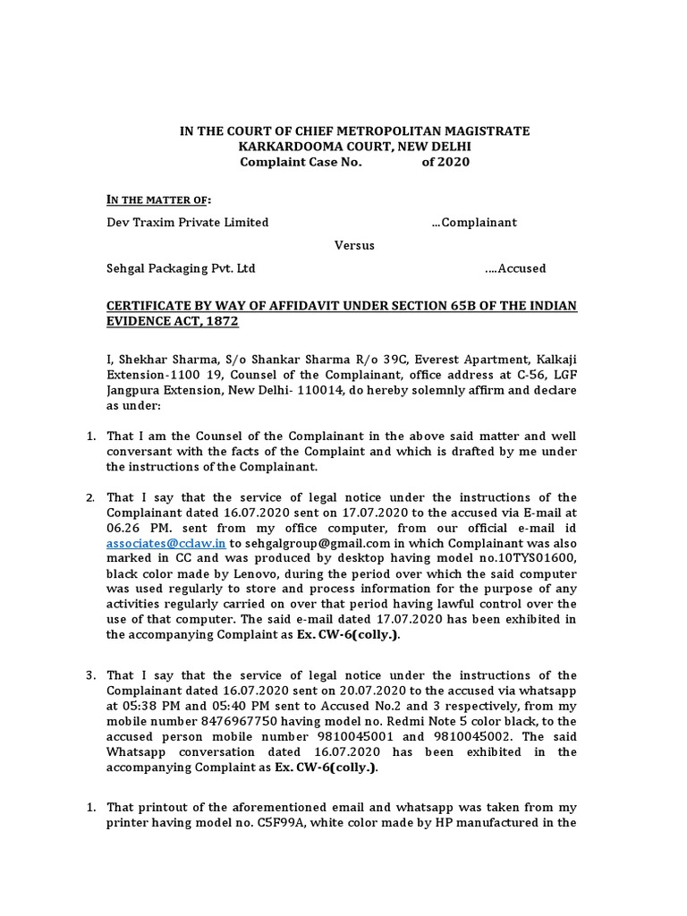 65B Certificate PDF Affidavit Public Law