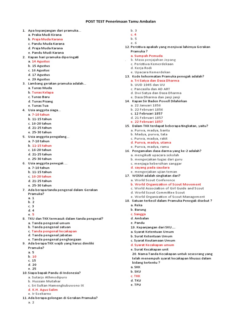 PRE TEST Penerimaan Tamu Ambalan PDF