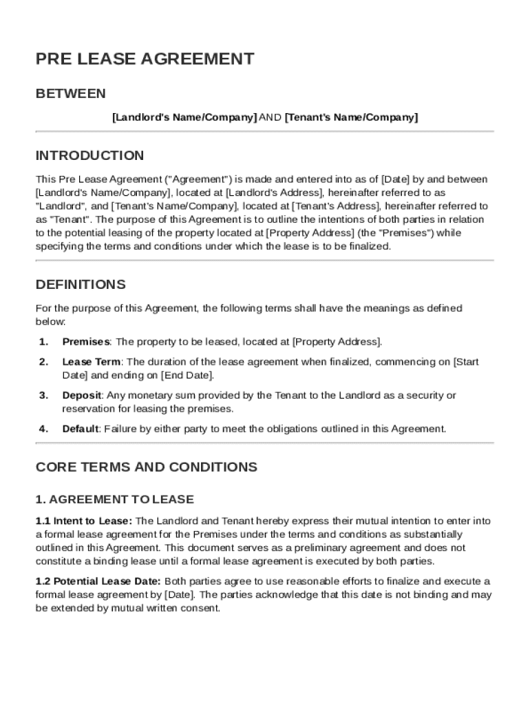 Pre Lease Agreement Template: Fill out sign online DocHub