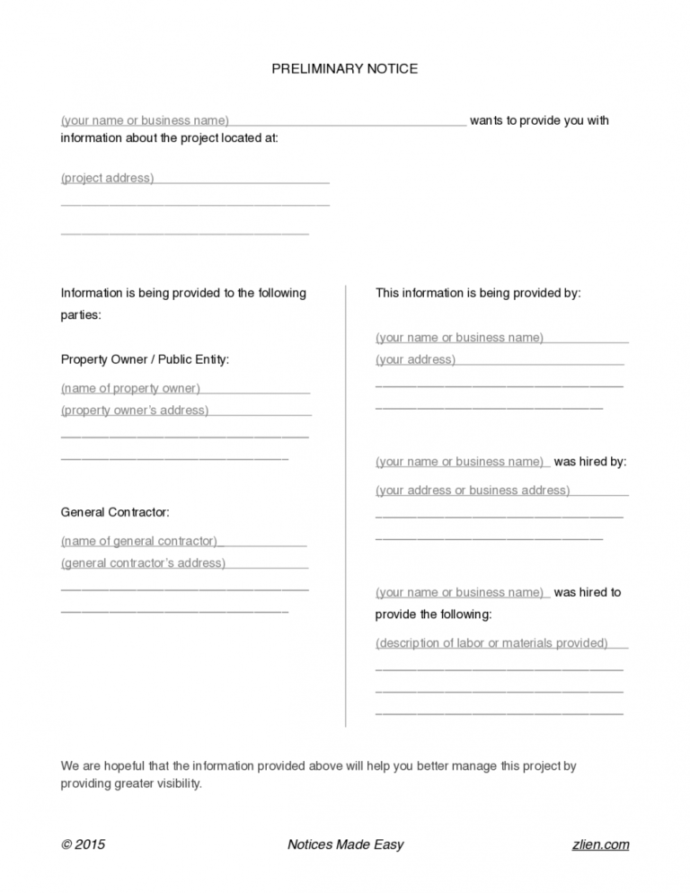 FREE 8 Preliminary Notice Forms in PDF Ms Word