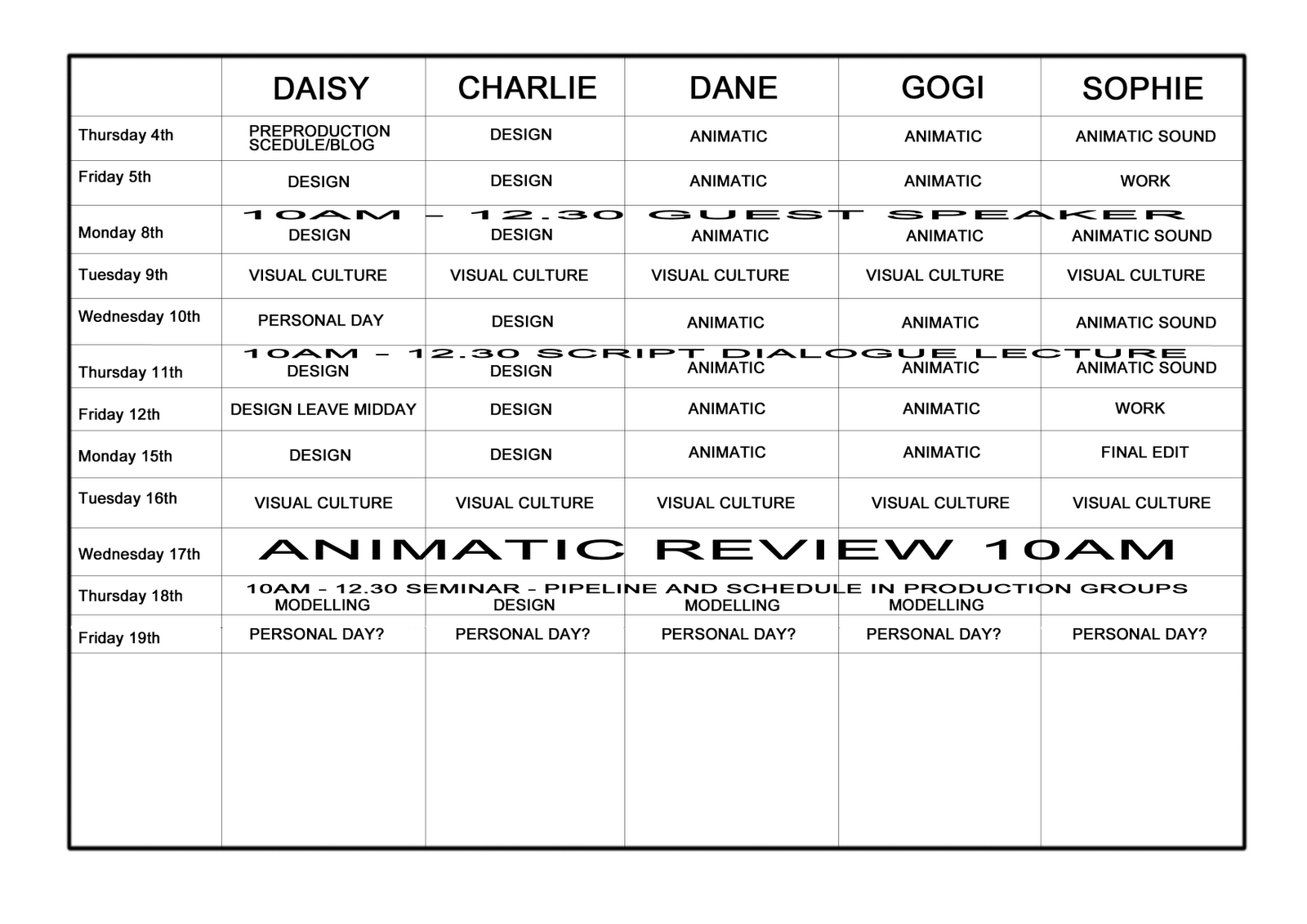 Pre Production Schedule Template Best Of Degree 2d Animation Exercise