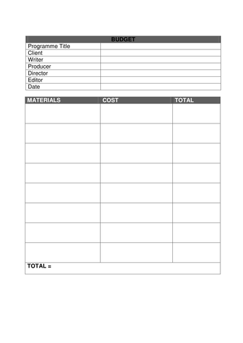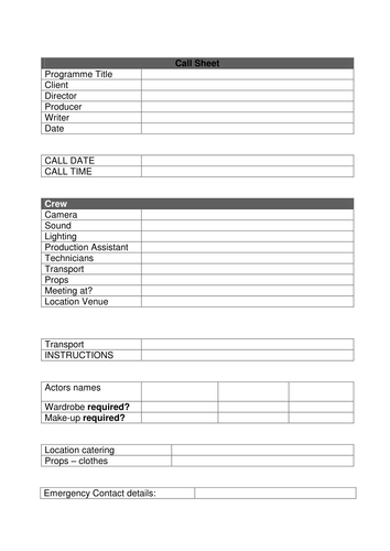 Film and TV Pre Production Template Pack Teaching Resources