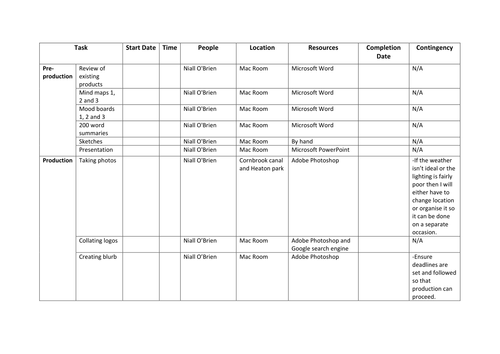 Pre Production Schedule Template