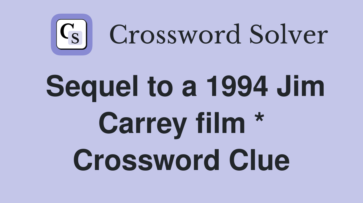 Sequel to a 1994 Jim Carrey film * Crossword Clue Answers Crossword