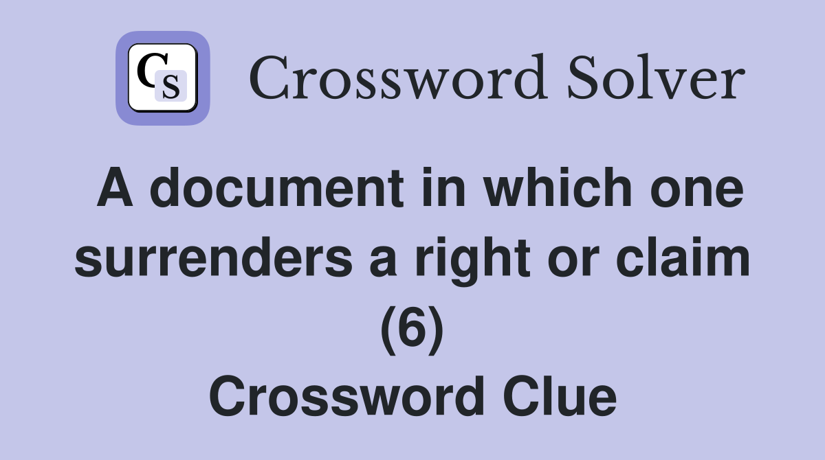 A document in which one surrenders a right or claim (6) Crossword