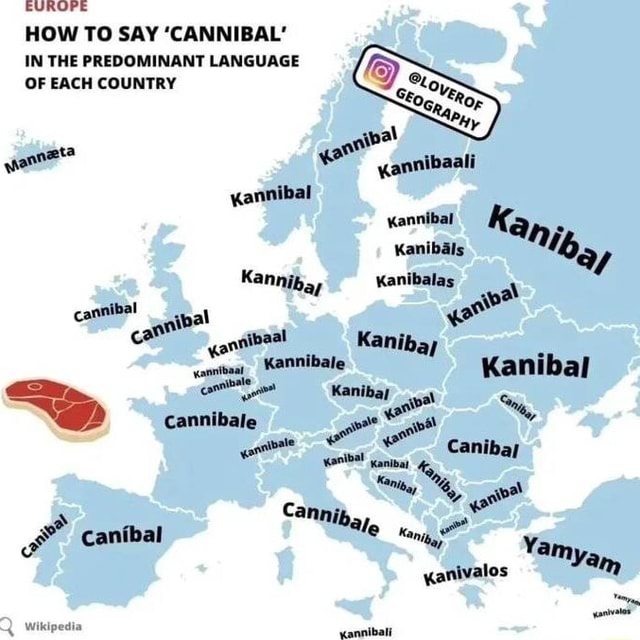EUROPE HOW TO SAY #39 CANNIBAL #39 IN THE PREDOMINANT LANGUAGE OF EACH