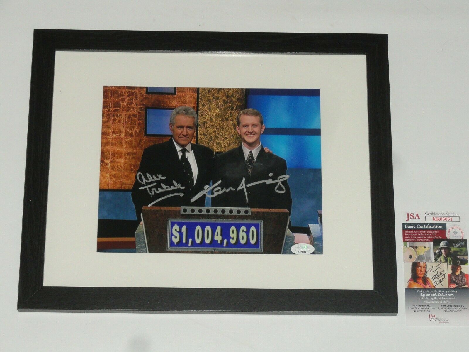 ALEX TREBEK KEN JENNINGS SIGNED FRAMED AND MATTED 8X10 PHOTO JEOPARDY