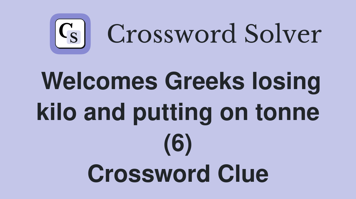 Welcomes Greeks losing kilo and putting on tonne (6) Crossword Clue