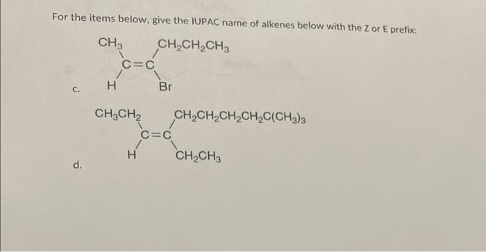 Solved For the items below give the IUPAC name of alkenes Chegg com